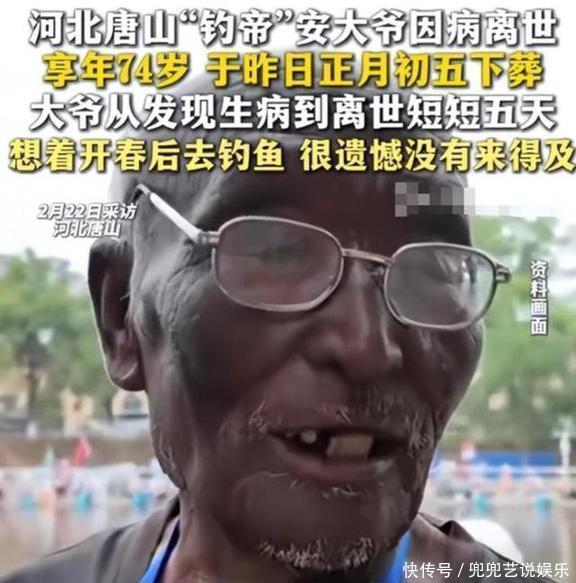 “钓帝”安国勇最后一位离开的,是河北唐山的网红“钓帝”安大爷,他本名叫安国勇,2月21日去世的,75岁。跟前面三位比起来,安大爷没有那么响亮的头衔,也没有干出什么惊天动地的大事,就是一个普普通通的老头儿。但他那种朴实、真诚的样子,打动了好多网友。安大爷钓了一辈子鱼,常年在外面风吹日晒,皮肤晒得黑黢黢的,跟老抽一个色儿。认识他的人都知道,这是他一辈子喜欢钓鱼留下的印子。