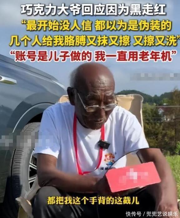去年7月,他儿子随手拍了段他钓鱼的视频发到网上,没什么剧本,也没什么包装,更没有故意炒作,就是老人安安静静坐在河边钓鱼的样子。没想到啊,一下子就火了,网友们都亲切地叫他“钓帝”“巧克力大爷”。火了之后,安大爷的生活一点儿没变。他还是每天早上六点半准时出门钓鱼,身上穿的还是那些旧衣服,用的还是老人机,根本不知道啥叫网红,也不知道自己有多火,账号全靠儿子打理。