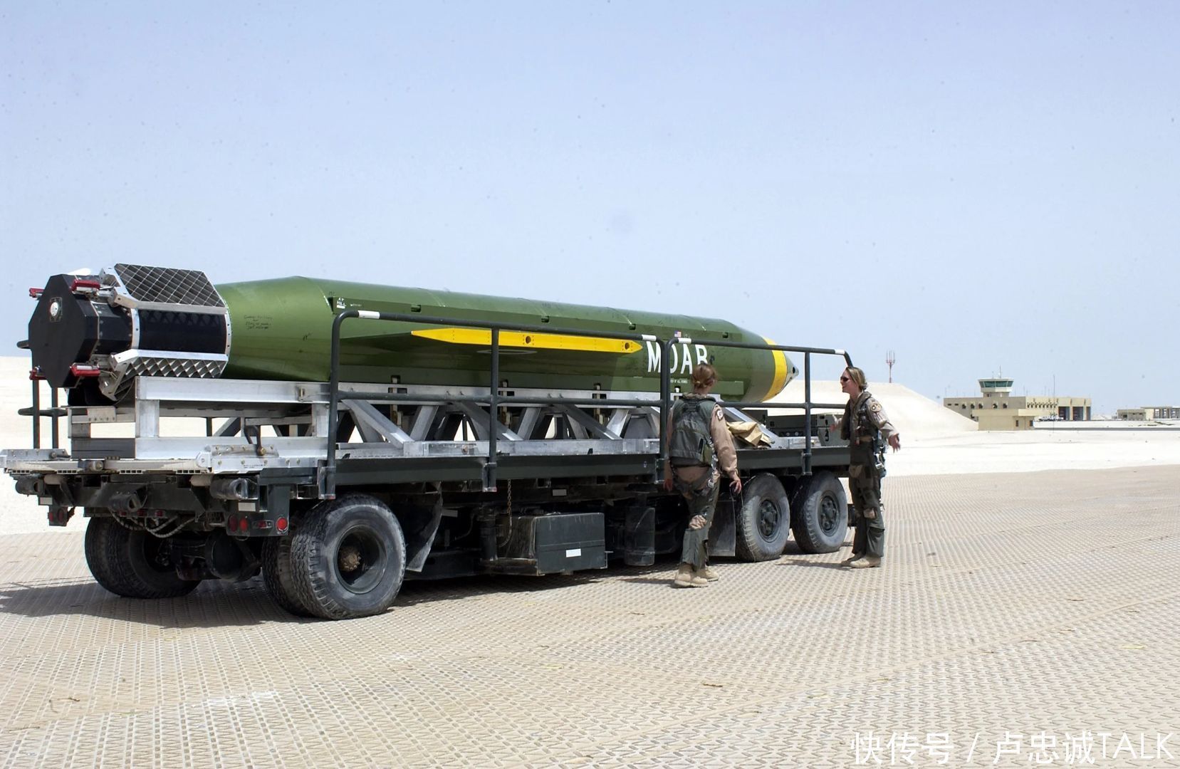 可能有人对“炸弹之母”不了解,我给大家简单拆解一下。“炸弹之母”的学名是GBU-43大型空爆炸弹,是美军最大的非核武器之一,2002年开始研制,2003年完成实弹试爆,2017年第一次在阿富汗实战使用,专门用来打击隐蔽在洞穴、工事里的目标。它重达近10吨,弹长9米多,里面装填了8000多公斤的特种炸药,爆炸威力半径能达到137米,相当于11吨TNT炸药的威力,仅次于核弹。