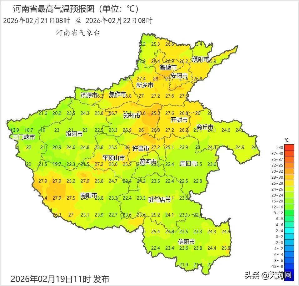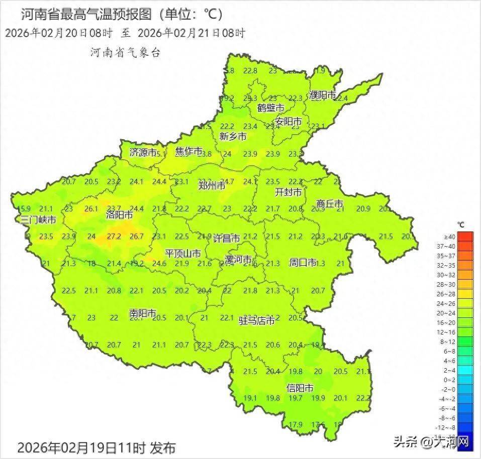 今天河南最高气温东部、南部20到22℃,其他县(市、区)22到24℃。
